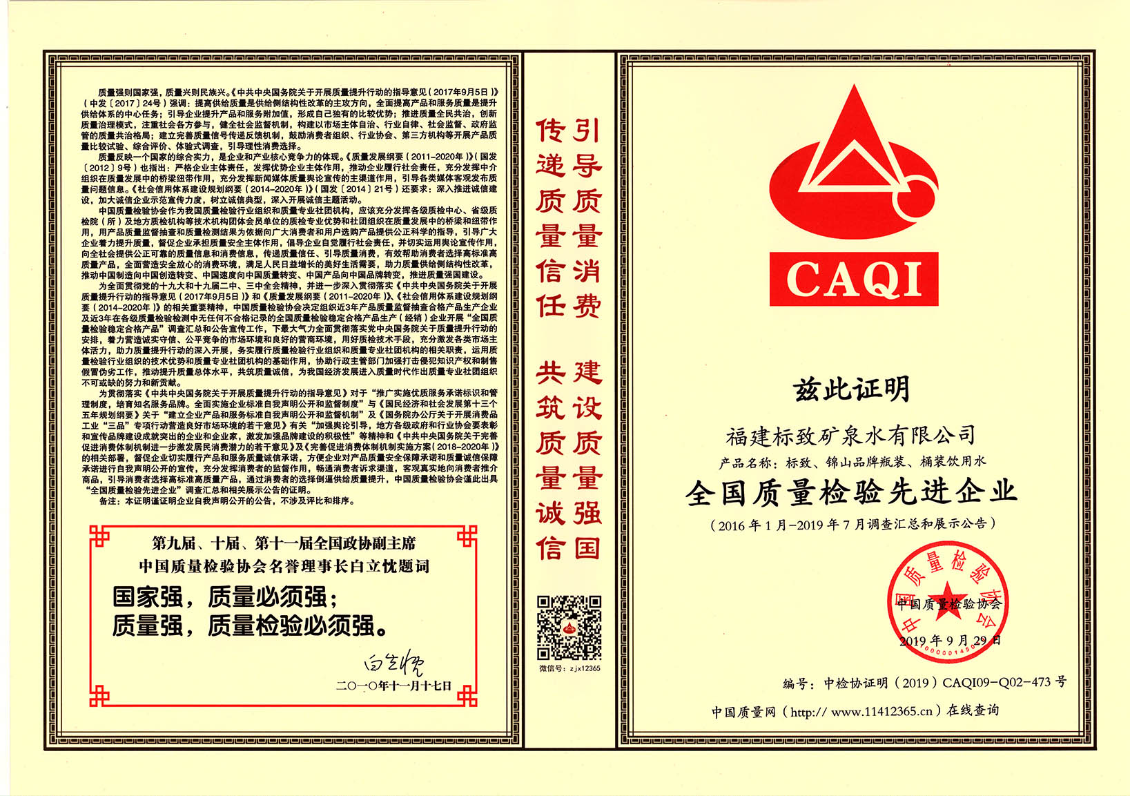 • 2020-03-252019年9月,標致公司榮獲“全國質量檢驗先進企業”稱號